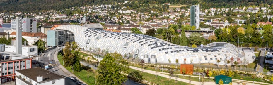 Modernes Bauen und Arbeiten im Einklang mit der Natur. Dafür steht der neue Swatch-Hauptsitz in Biel, welcher sich mit seiner schimmernden, geschwungenen Silhouette harmonisch in die städtische Umgebung einfügt.