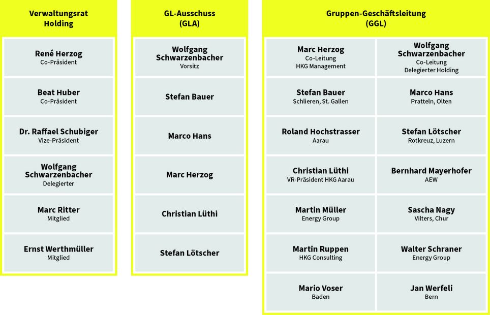 The executive management – all employees of HKG for many years – forms the top operational management body in which all independent subsidiaries are represented. In the organisational matrix, the 14 members of the leadership team share out all the line management, functional tasks and responsibilities.